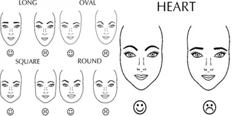 Bentuk wajah hati biasanya lebar pada bagian dahi dan mengecil di bagian dagu. Bentuk alis terbaik adalah alis yang seperti kurva bulat. Jangan membuat tampilan kurva bulat yang terlalu tinggi karena hal tersebut menampilkan alis yang tak alami.